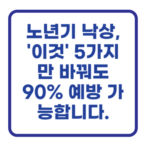 얼마 전 저희 어머니께서 화장실 앞에서 살짝 미끄러지셨다는 얘기를 듣고 가슴이 철렁 내려앉았던 기억이 나요. 다행히 크게 다치진 않으셨지만, "노년에 넘어지면 인생도 무너진다"는 말이 남의 일 같지 않게 느껴지더라고요. 실제로 2025년 통계에 따르면 노년층 낙상 사고의 절반 이상이 바로 '집'에서 발생한다고 합니다. 가장 안전해야 할 공간이 가장 위험한 장소가 될 수 있다는 사실, 정말 충격적이지 않나요? 하지만 너무 걱정 마세요. 오늘 제가 알려드릴 '낙상 예방 5가지 골든룰'만 잘 기억하고 실천한다면 소중한 우리 부모님, 그리고 나의 건강한 노년을 지킬 수 있답니다. 😊