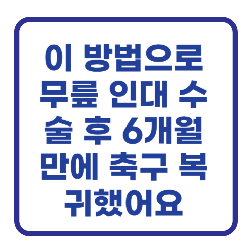 - 재활 후기 (3~6개월): 가벼운 조깅을 시작하며 다시 뛰는 즐거움을 느낌. 6개월 차에는 축구 동호회에 복귀하여 가벼운 패스 연습을 시작하며 성공적으로 재활을 마무리.