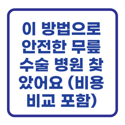 오늘은 안전한 무릎 수술 병원을 선택하는 방법과 비용에 대해 자세히 알아봤어요. 부모님이나 자신의 무릎 건강 때문에 고민이신 분들께 조금이나마 도움이 되었으면 좋겠습니다. 더 궁금한 점이 있다면 언제든지 댓글로 물어봐 주세요! 😊