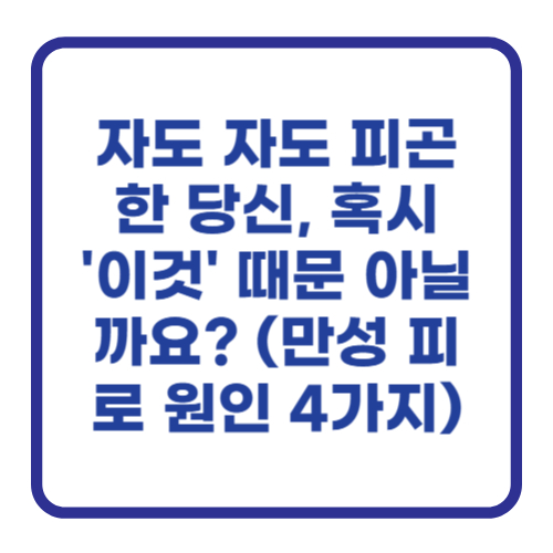 자, 이제 지긋지긋한 피로의 원인을 조금은 알 것 같으신가요? 피로는 우리 몸이 보내는 '휴식이 필요해!'라는 중요한 신호랍니다. 오늘부터라도 내 몸의 소리에 귀 기울여보는 건 어떨까요? 여러분의 활기찬 하루를 응원합니다! 더 궁금한 점이 있다면 언제든 댓글로 물어봐주세요~ 😊