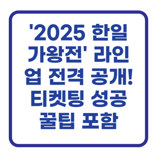 요즘 정말 '한일가왕전' 얘기밖에 안 들리는 것 같아요. 작년에 이어 올해는 또 어떤 레전드 무대가 나올지 벌써부터 심장이 두근거리는데요. 특히 이번 2025년 시즌은 한일 수교 60주년을 기념해서 그런지 라인업부터 정말 역대급이라는 소문이 자자하더라고요! 저처럼 티켓팅 날짜만 손꼽아 기다리신 분들 많으시죠? 그래서 오늘은 여러분의 소중한 시간과 노력을 아껴드리기 위해 2025 한일가왕전의 모든 것을 A to Z로 정리해 봤습니다. 😊