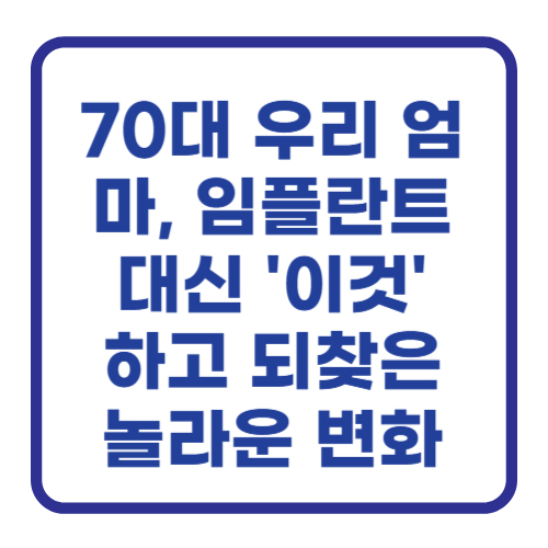 "아이고, 이젠 질긴 건 씹지도 못하겠네..." 얼마 전 저희 아버지께서 딱딱한 깍두기를 드시다 말고 힘없이 뱉어내시는데, 마음이 철렁하더라고요. 부모님 연세가 드실수록 가장 걱정되는 것 중 하나가 바로 '치아 건강' 아닐까 싶어요. 당장 임플란트를 해드려야 하나 싶다가도, 비용이나 부작용 걱정에 선뜻 결정하기가 어렵죠. 그런데 정말 임플란트만이 유일한 해결책일까요? 😊